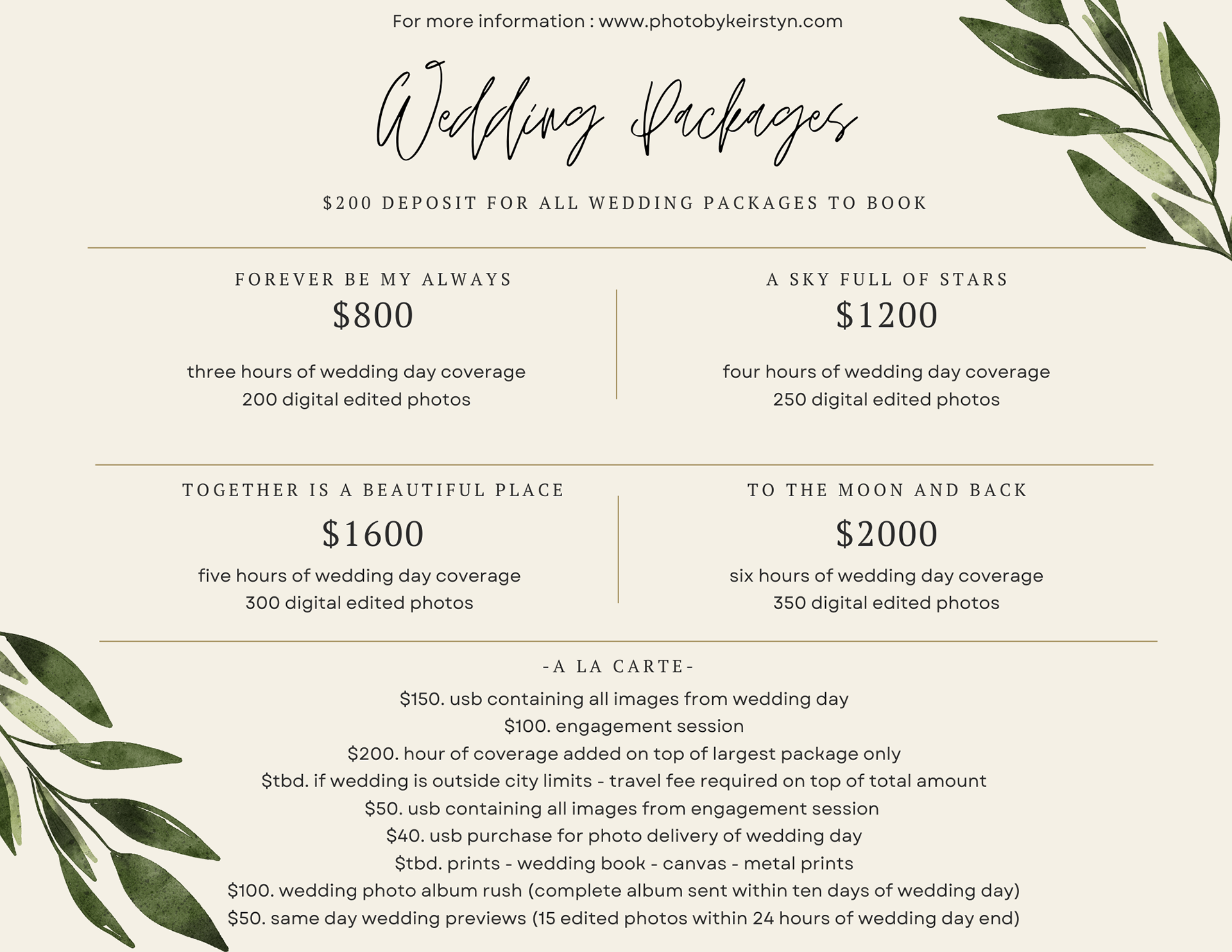 All packages do not include sales tax!